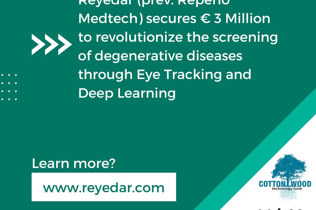 Reyedar, a deeptech startup and LIFE Cooperative member developing a proprietary medical technology platform for early detection of age-related degenerative diseases, announced today that it secured a € 3 million investment to further advance its ground-breaking solution. Eye tracking technology combined with deep learning provides a unique window to the brain and to people’s health situations in which many age-related diseases can be detected. The funding round is led by Cottonwood Technology Fund, a leading venture capital firm that invests in early-stage technology companies. The round was joined by NOM, Pupil Labs, Uneti Ventures, and existing investor Blue Sparrows MedTech Fund.